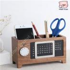 ペン立て 木製 ウッド カレンダー オフィス用品 卓上文具収納 鉛筆オーガナイザー ペンスタンドホルダー シンプル 筆立て ナチュラル 置物