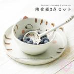 食器 陶食器 食器セット 一人暮らし 3点セット 3Colours おわん プレート さじ 中華セット ネコ柄 丼ぶり 深皿 カレー皿 パスタ皿 どんぶり 麺鉢 スープボウル
