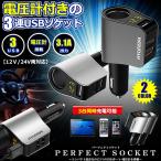カーチャージャー シガーソケット 3ポート 急速充電 usb 3口 3.1A急速充電 12V 24V 電圧計 iPhone Android iPad Galaxy用 カー用品 シガー増設 送料無料