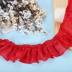 uxcell 5.5ヤード ラッフルレーストリムリボン8cmプリーツオーガンザレースエッジトリム縫製レース生地トリムDIYクラフトドレス衣類 レッド