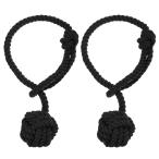 uxcell カーテンタイバックロープ 綿装飾カーテン カーテンホールドバック シングルボール付き 屋内/屋外カーテン用 黒 2個