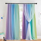 PONY DANCE 透かし彫り星柄 虹色 遮光 カーテン 白いレースカーテン付き 2枚組 風呂場 台所 幼稚園 プライバシー 子供部屋用 100x1