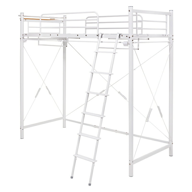 カーテンを取り付けられるロフトベッド ホワイト[THU3000002722]|ロフトベッド ハンガーポール 衣類収納 カーテンポール付 2口コンセント付