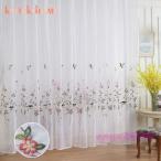 カーテン レース UVカット 北欧 刺繍 植物 柄 ナチュラル 紐タッセル付き 両開き2枚組 片開き1枚組 幅101?200cm丈201?260cm 薄手