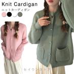 ポケット付き ニット カーディガン クールネック ショート丈 ニットカーディガン カーディガン 春 秋 長袖 カーディガン Uネック レディース ショ