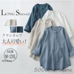 ブラウス シャツ レディース 七分袖 ノーカラー バンドカラー 綿 コットン トップス まぁるいカーブのアトリエブラウス 秋服 ゆったり 体型カバー 敬老の日