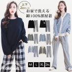 パジャマ レディース パンツ ブラウス 上下セット ルームウェア コットン100% ナイトウエア クールネック シャツ Vネック カーディガン ボーダー ロングパンツ