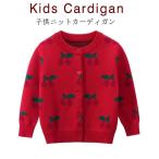 女の子 ニットカーディガン チェリー柄 子供 ニットカーディガン 丸首 春 キッズ カーディガン 長袖 ニット カーディガン クールネック Uネック