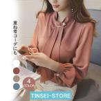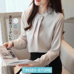 ブラウス レディース 長袖ブラウス 春秋 オフィスブラウス 無地 オシャレブラウス シフォントップス 韓国風 大人 通勤OL ゆったりシャツ
