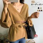 リブニット カーディガン レディース ショート丈 ウエストマーク ニットトップス Vネック カシュクール ニットセーター 着やせ