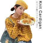ショート丈 ニット ニットカーディガン レディース カーディガン 丸首 クールネック チェック柄 ライトアウター Uネック カーディガン 厚手 長袖 碁盤