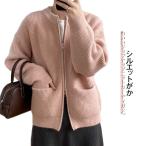 セーター ノーカーラー モヘア ふわふわ ニットカーディガン カーディガン トップス カーディガン 長袖 クールネック 前開き 羽織り あたたかい 保
