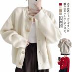 無地 レディース カジュアル カーデ ニットカーディガン 冬 カーディガン クールネック アウター
