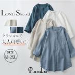ブラウス シャツ レディース 七分袖 ノーカラー バンドカラー 綿 コットン トップス まぁるいカーブのアトリエブラウス 秋服 ゆったり 体型カバー 敬老の日
