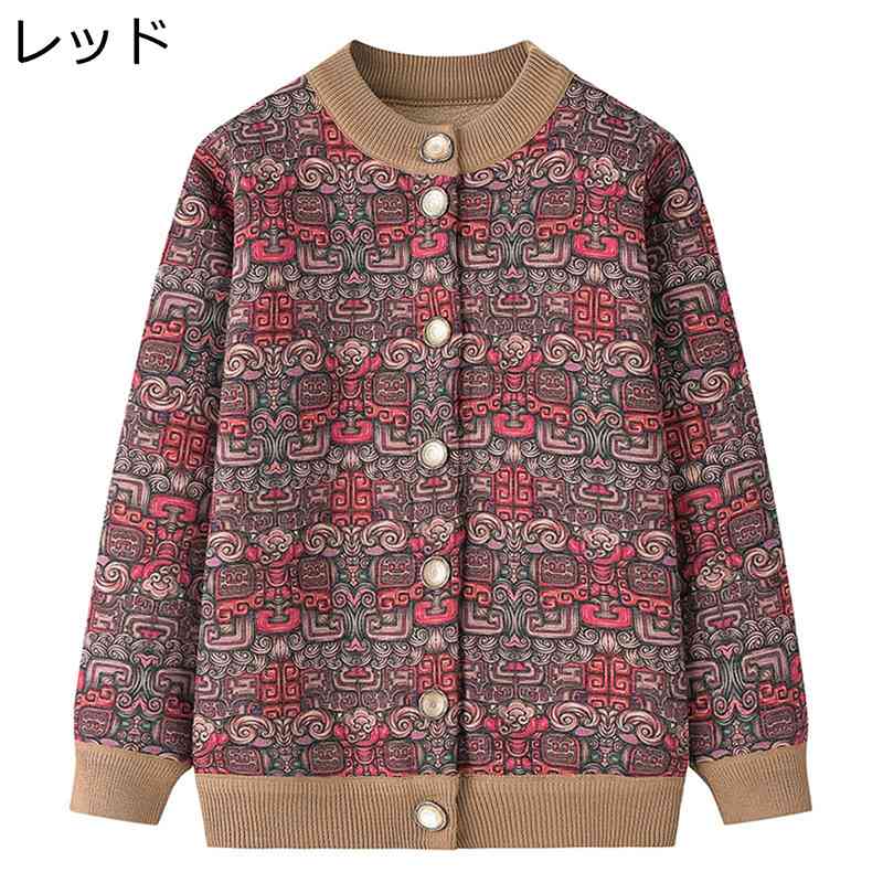 高齢者 女性 花柄ニット 裏ボア レディース ニットカーディガン XL-5XL 婦人服 エスニック風 クールネック ジャケット 秋服 セーターアウター 前開きボタン ストレッチ 厚手 暖か 春秋冬着 お年寄り