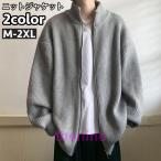 ニットジャケット カーディガン ジップアップ メンズ 男性 アウター 上着 リブ 無地 シンプル 暖かい 防寒 大きいサイズ ゆったり カジュアル 紳