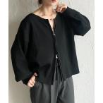 カーディガン 長袖ボリュームスリーブダブルジップアップリブニットカーディガン レディース