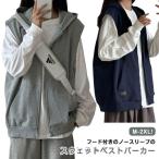 前開き パーカー 無地 レディース ベスト 春 カーディガン ジップアップ スウェット トップス ポケット付き 秋 アウター ノースリーブ 羽織り 大