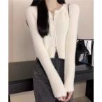 ダブル ジップアップ カーディガン リブ ニット カーディガン ダブルジップ ショート丈 ニットカーディガン 春 秋 長袖 カーディガン レディース