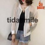 カーディガン 長袖 ジップアップ ブルゾン ショート丈 シースルー UV対策 紫外線 カジュアル レディース