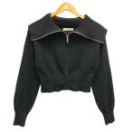 イング INGNI リブニットカーディガン クロップド丈 ジップアップ 半袖 黒 M *A261 レディース