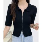 カーディガン 「七色展開 」ダブルジップアップカラー半袖カーディガン レディース