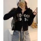 カーディガン 配色 ロゴ コンパクト ジップアップ ニット カーディガン レディース