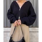 カーディガン シャギー リブニット ジップアップ カーディガン レディース