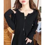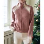 カーディガン リブ&シャギーニット ジップアップ カーディガン レディース