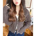 カーディガン フード付きジップアップニット レディース ニット レディース