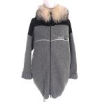 未使用品△PRADA プラダ ウール100% フォックスファー ロゴ刺繍 ジップアップ ニットカーディガン ジャケット グレー ブラック 36 正規品