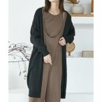 カーディガン 綿混シンプルトッパーニットカーディガン(ロング丈) レディース
