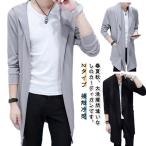 無地 メンズ 接触冷感 薄手 羽織り カーディガン ショールカラー ライトアウター フード付き カーディガン ロングカーディガン テーラードジャケット