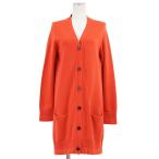 【美品】HERMES エルメス ロングカーディガン ニット カシミヤ100% ミドルゲージ Vネック レディース 38 オレンジレッド 38 英国製