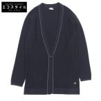 美品 HERMES エルメス ウール ステッチ ロングカーディガン レディース ネイビー 36