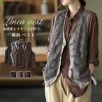ベスト レディース 前開き リネン 麻 トップス シンプル 重ね着 リベット 春 夏 秋 すっきり ゆったり 体型カバー ナチュラン ナチュラル 大人かわいい カ