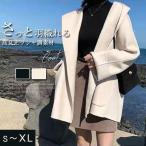 ノーカラー レディース 春 秋 薄手 ショート丈 長袖 コート アウター 羽織り トップス とろみコート 着回し力 レディース 韓国風 着痩せ 体型カバー