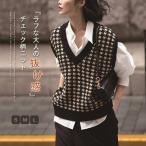 ベスト レディース 秋冬 ニット ジレ vネック チェック柄 ノースリーブ ショート丈 フェミニン プルオーバー ニットウェア 大人 おしゃれ きれいめ 普段着 重ね