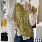 ベスト レディース 秋冬 ニット ケーブル編み 透かし雕り ノースリーブ セーター ニットベスト ノースリーブ vネック ショート丈 ニットウェア 無地 大人 着痩せ