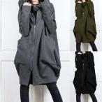 パーカー レディース 秋 コート ロングパーカー スウェット アウター トレーナー カーディガン トップス ハイネック ファスナー フード付き フェイクレイヤード
