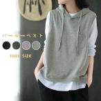 ベスト レディース カットソーベスト ジレ フーテッドベスト トップス レディース ベスト プルオーバー パーカーベスト スウェット フリーサイズ 大きいサイズ