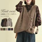 ニットベスト ベスト レディース ノースリーブ Vネック 前開き カーディガン ニット リブ ケーブル編み リブ編み 羽織 ゆったり ナチュラル アウター トップス