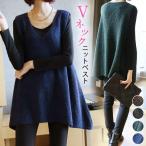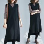 ロングニットベスト レディース ベスト Vネック ニットワンピース 無地 重ね着 定番 ニット ナチュラル ノースリーブ カジュアル 大人 ハンサム シンプル