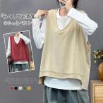 ニットベスト vネック ベスト レディース リブ レイヤード 重ね着 森ガール ニットベスト ニット トップス ベスト ノースリーブ ショート丈 シンプル 無地 カ