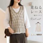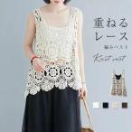 ベスト レディース 春夏 大きいサイズ レース トップス ジレ Vネック 花柄 透かし編み ニット ノースリーブ サマーニット プルオーバー 春 夏 レイヤード