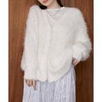 カーディガン 「forksy.」モンスターシャギーニットルーズVネックカーディガン レディース