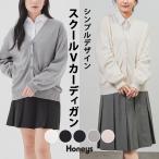 トップス カーディガン 長袖 Vネック ドロップショルダー 綿混 アクリル混 ポケット 無地 フロントボタン レディース Honeys ハニーズ スクールVカーディガン