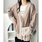 カーディガン 「FIRSTMOODコラボ」ウールライク配色Vネックカーディガン レディース