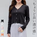 カーディガン レディース 薄手 Vネック 長袖 トップス リブニットカーディガン シアー きれいめ クロップド丈 白 通勤 通学 黒 夏 春 秋