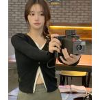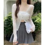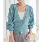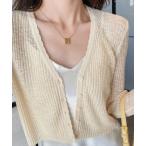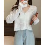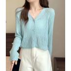 カーディガン 透かしランダムリブVネックショートカーディガン レディース